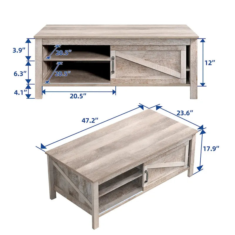 Farmhouse Rectangle Coffee Table with Adjustable Shelves and Sliding Barn Door