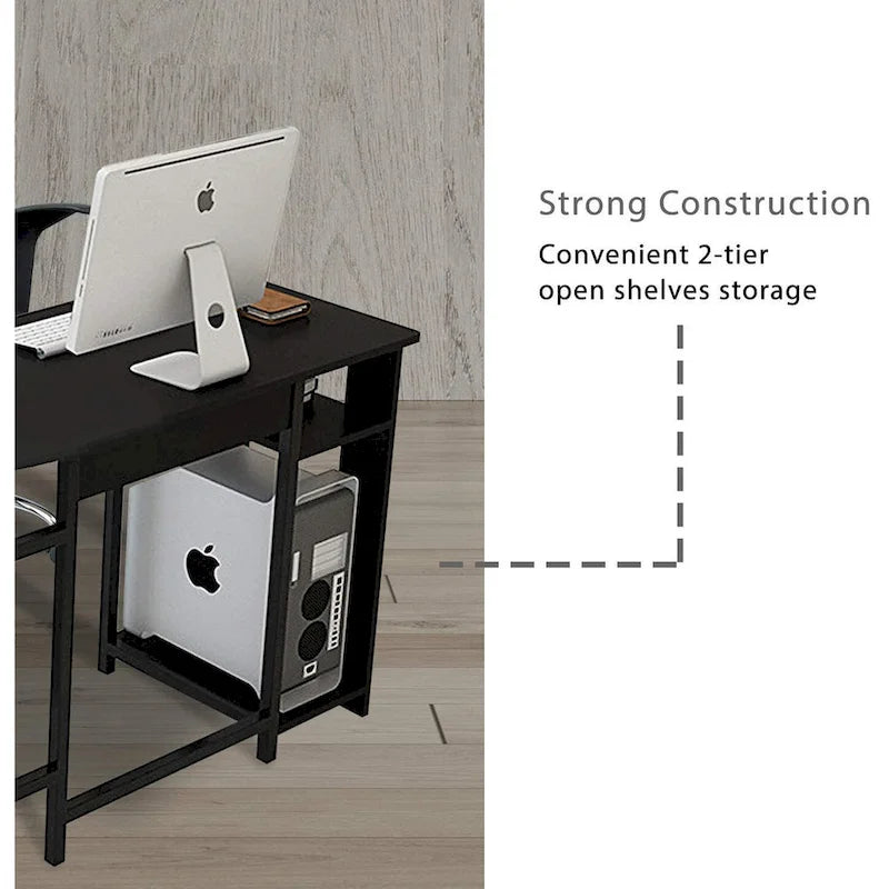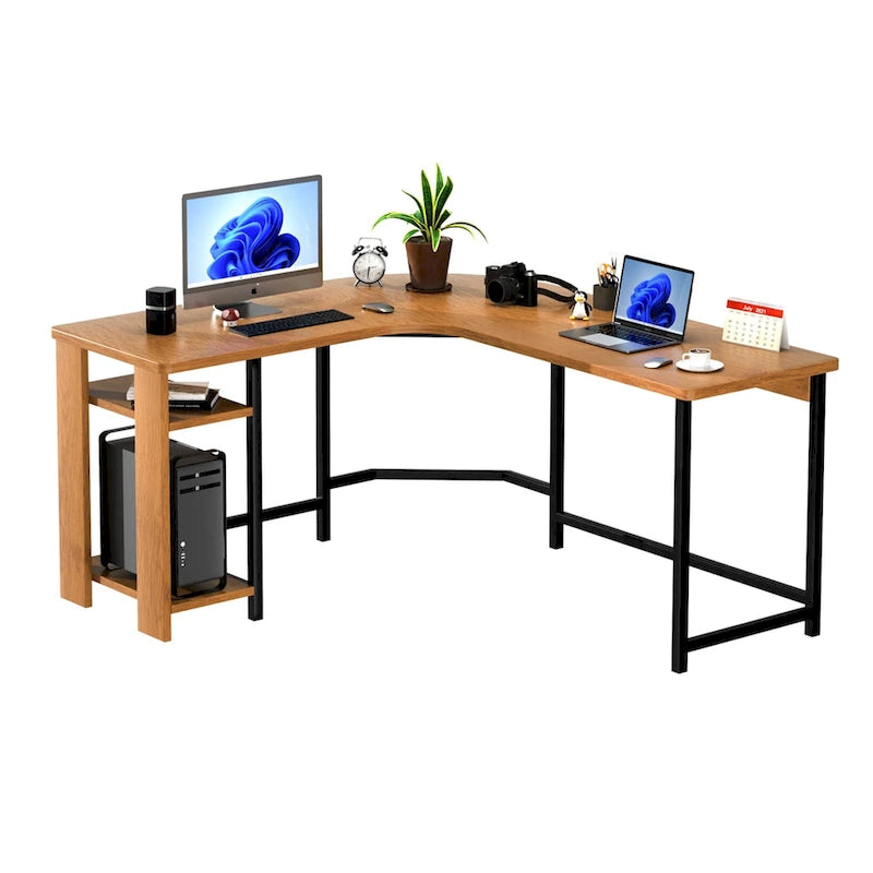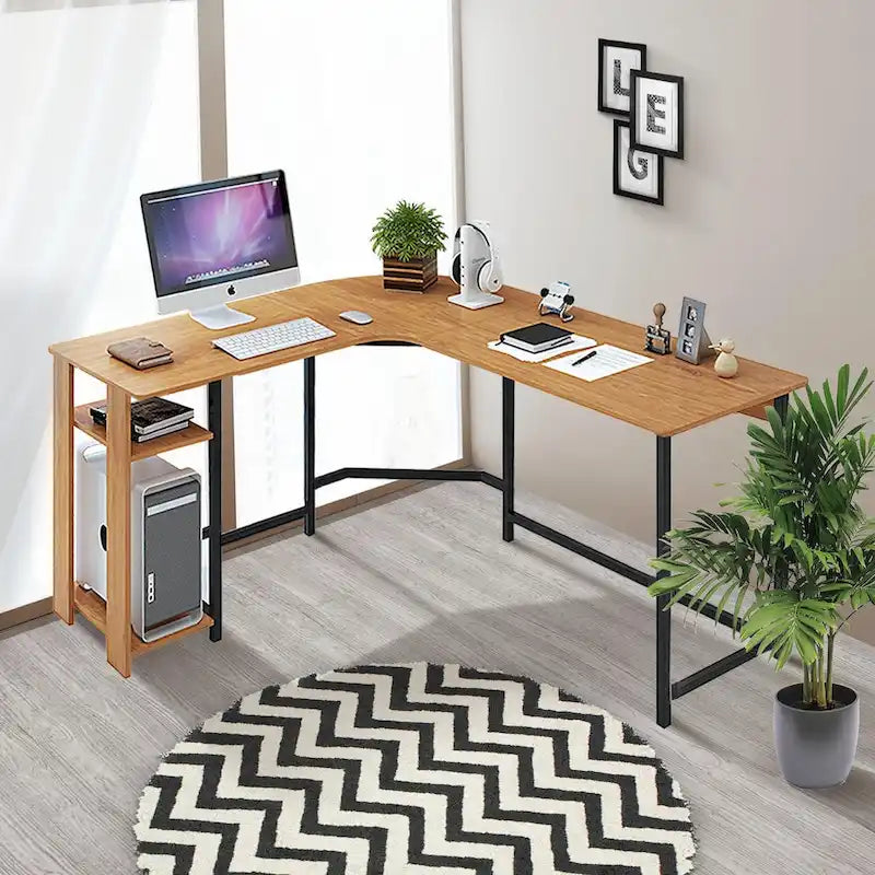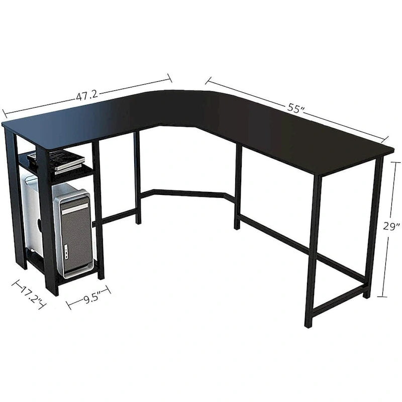 Upgrade your workspace with the L-Shaped Corner Desk Gaming Deska perfect blend of style and functionality. The sturdy construction easily supports heavy items, while the natural wooden surface is non-toxic and easy to clean. The waterproof and dirt-proof glossy finish adds sophistication, and the black frame bottom provides both support and mobility. Featuring shelves for storage and organization, this desk is suitable for adults and kids in any environment.