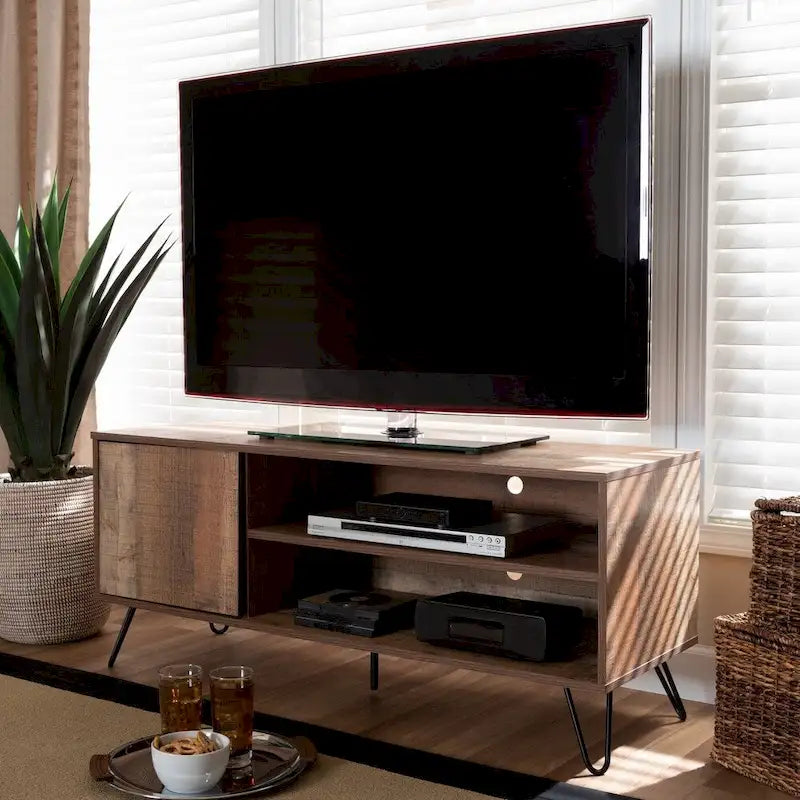 47" TV Stand - Rustic Oak - 1 Door - Hairpin Legs