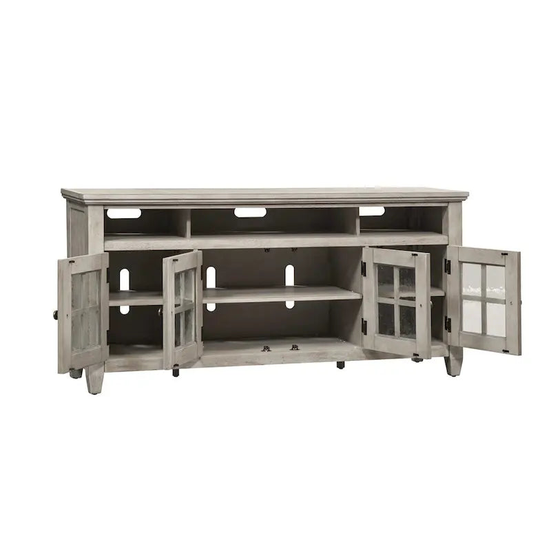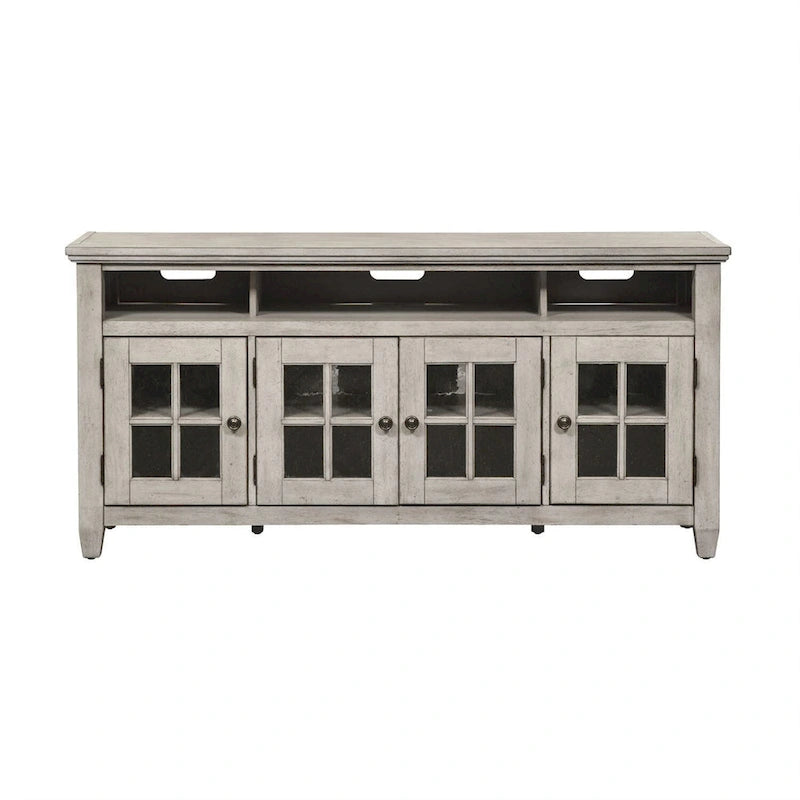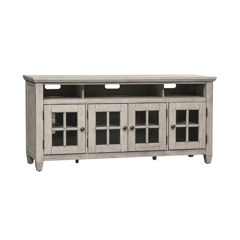 66" TV Stand - Antique White - Glass Doors