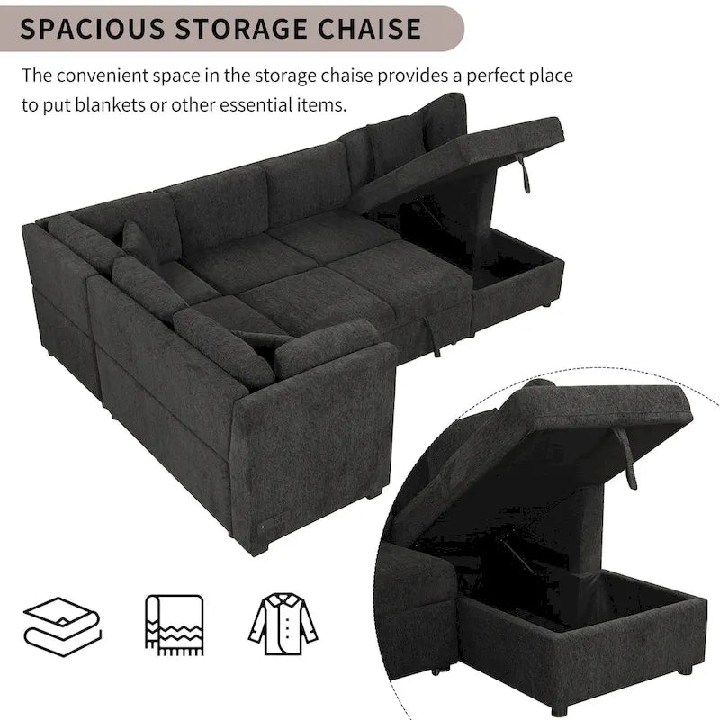 - Versatile Pull Out Sofa Bed - This sectional sofa features a U-shape, which is oversized and suitable for a big family. When guests drop in, you can easily turn this sofa into a bed with the help of smooth wheels and assistant straps, providing a sleeping solution for guests to stay over.