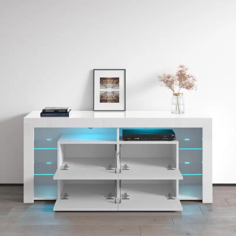 Home Shop Tv Stands 61" TV Stand - High Gloss White - LED Lights